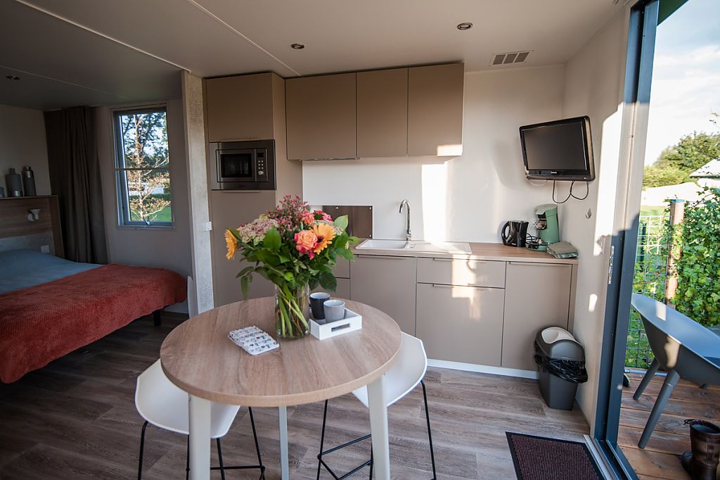 Hotelkamer Key West is onze nieuwste aanwinst op de camping! Een luxe & sfeervol huisje dat beschikt over een mooi zonnig terras. Het vrijstaande huisje is voorzien van lekker veel ramen, zodat je volop kunt genieten van de mooie natuur (zonder dat de privacy verloren gaat). Andere fijne faciliteiten in de Hotelkamer zijn;