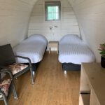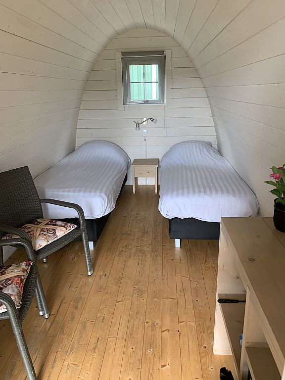 De Podge is een kleine houten ronde trekkershut, geschikt voor 2 personen. De Podge beschikt over 2 comfortabele boxspringbedden. Twee stoelen een tafeltje Een waterkoker, en een klein koelkastje.
