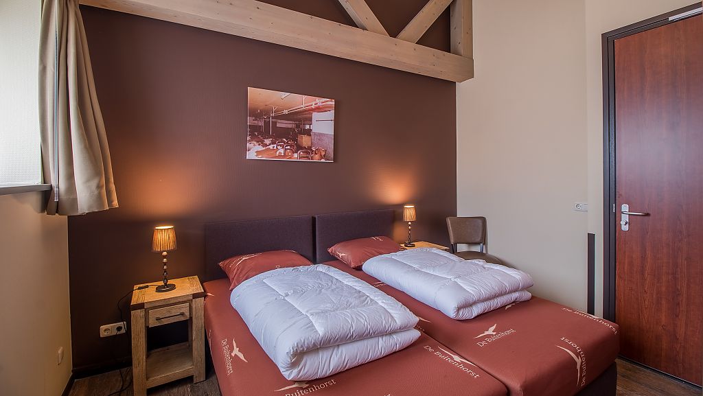 U heeft in De Ouwe Stal de beschikking over 4 ruime slaapkamers voorzien van twee losse eenpersoonsbedden (boxsprings). De kamers hebben elk een modern ingerichte badkamer met inloopdouche, wastafel en toilet.