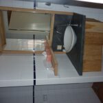 Eigen koelkast, waterkoker, koffiezetapparaat en buffetkast met serviesgoed.