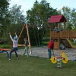 De sfeervolle buiten verlichting in de omringende tuin maakt het plaatje helemaal af. De keuken is voorzien van 5-pits gasstel en grote koelkast, en vaatwasser. Prachtig sanitair; 3 douches waarvan 1 geschikt voor invalide. 4 toiletten en 1 urinoir. Dit alles voorzien van vloerverwarming. De slaapzaal heeft geen verwarming. Hier zijn 5 slaapkamers allen voorzien van 2 stapelbedden met dekbed en kussen. men kan er extra kamers bij huren of met eigen tent of kampeermiddel komen. De prijs is zeer aantrekkelijk. Voor deze gezellige locatie. Er is ’n speelruimte langs deze accommodatie ideaal voor de kinderen en ook voor volwassenen is er vertier genoeg.