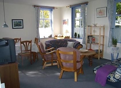 Op de begane grond bevindt zich een compleet uitgeruste keuken, de woonkamer met eet- en zithoek, televisie, dvd en radio-cd speler en de toilet en douche.