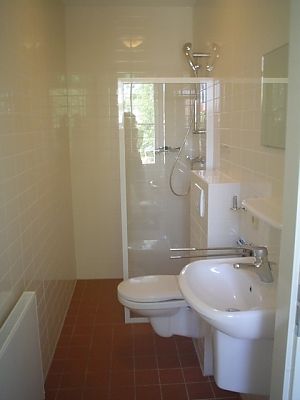 Kamer 6 & 7 delen de badkamer met douche, wastafel en toilet