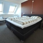 Er staat een boxspring bed van 2 * 90 bij 200 op de kamers.