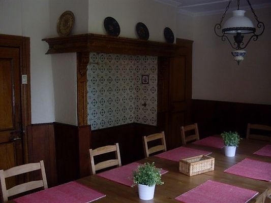 De boerderij is zoveel mogelijk in oude stijl gehouden, zoals te zien is aan o.a. de ouderwets betegelde wanden. Het huis bestaat uit : hal met badkamer(douche, toilet) en verderop in de hal nogmaals een douche en toilet (apart)vanuit de hal komt u in de keuken :met magnetron,vaatwasser,oven,diepvries,kookplaat,koelkast.Woonkamer: met tv en radio.