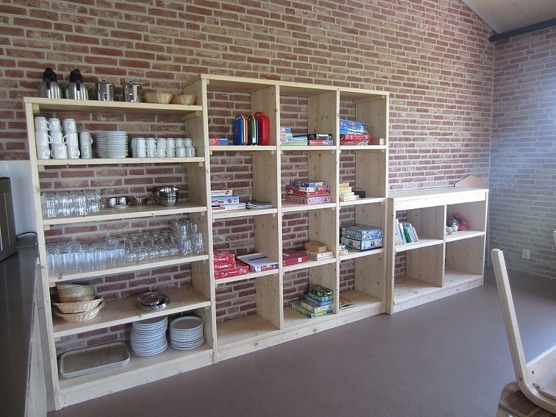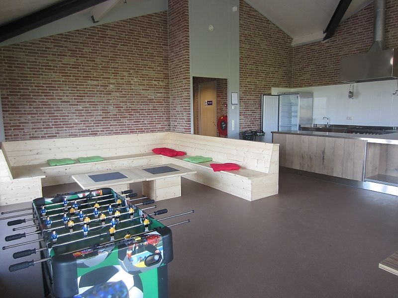De recreatiezaal is ingericht met een keukenhoek van alle gemakken voorzien te denken valt aan oven, magnetron, kookplaat, vriezer, vaatwasser en koelkast.