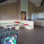 Ook is er een kast met spelletjes, boeken. Een voetbaltafel en loungehoek.