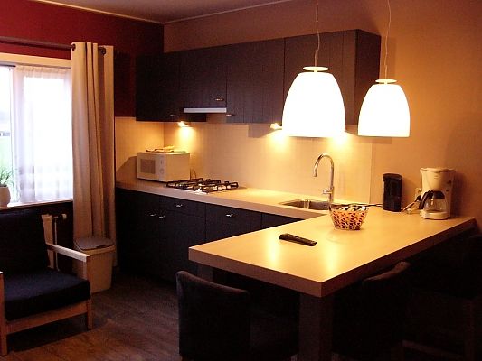 Het appartement is ingericht voor 4-5 personen en is voorzien van eigen sanitair, keuken en televisie. Er is een geheel ingerichte keuken waarin aanwezig: een magnetron en koelkast en vaatwasser. Het appartement is voor in de boerderij gelegen.