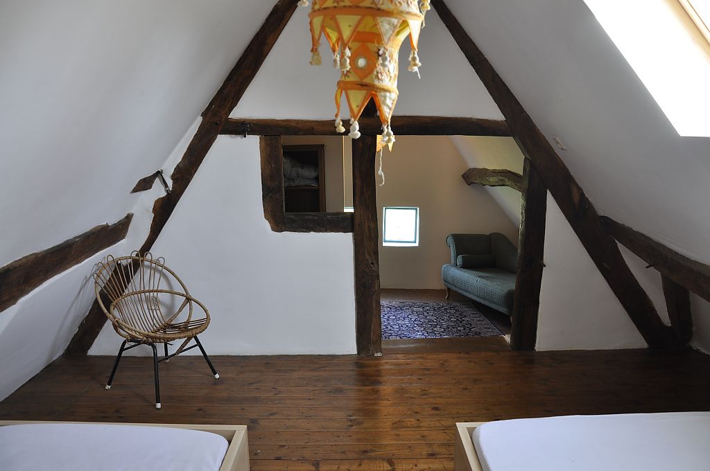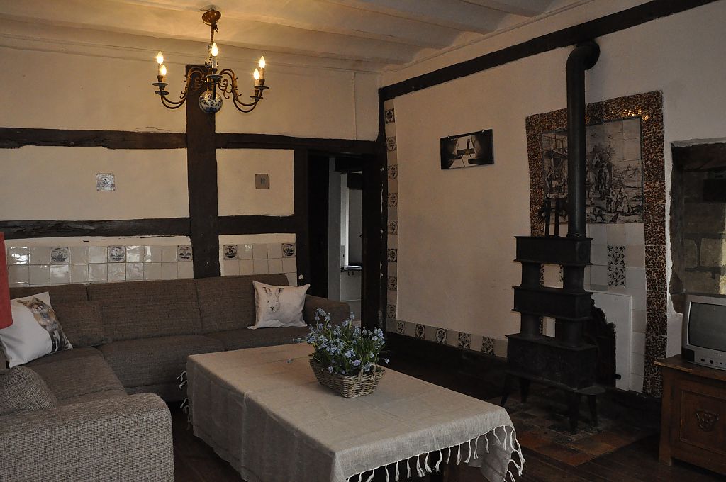 Grote vakwerkwoning, max. 13 pers, 5 slaapkamers, 2 badkamers, CV, open haard en houtkachel, tuin, prachtig en landelijk gelegen op helling in Geuldal, terras en tuin op zuiden, nabij bos.