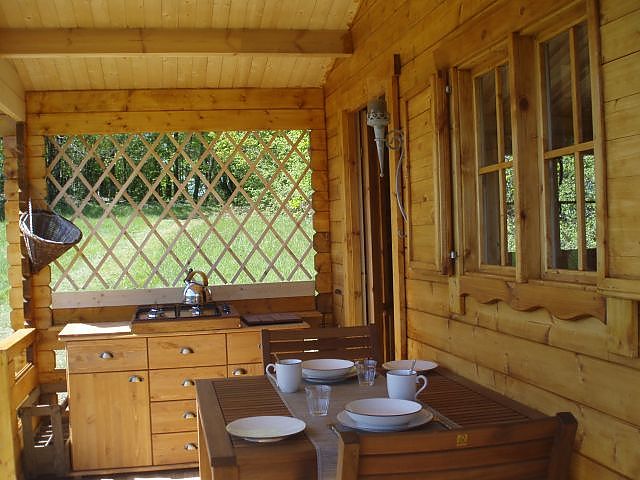 De blokhut ligt op een van de mooiste plekken op ons domein van 7 hectare, met een magnifique uitzicht; u waant zich ‘alleen op de wereld’ !