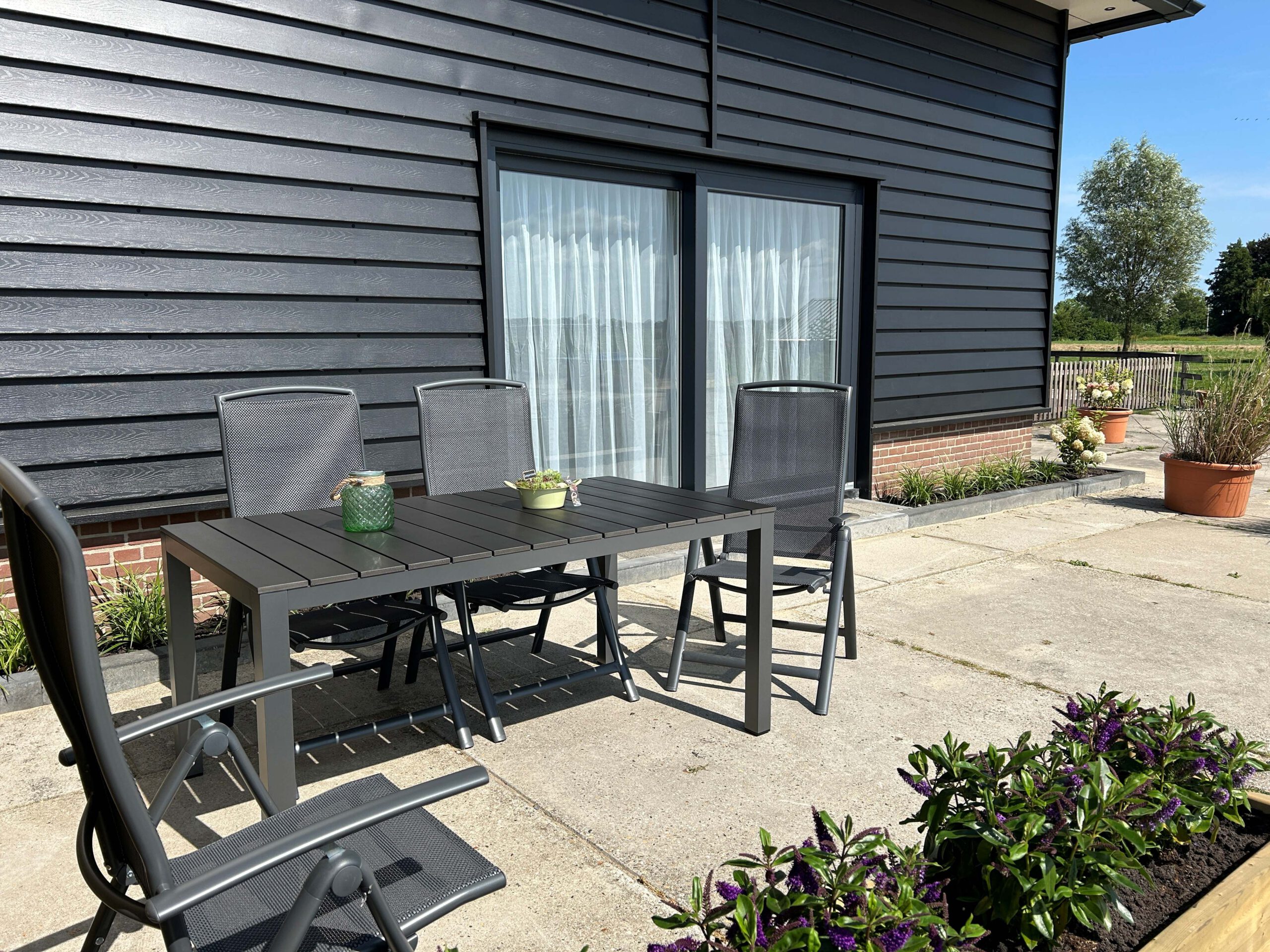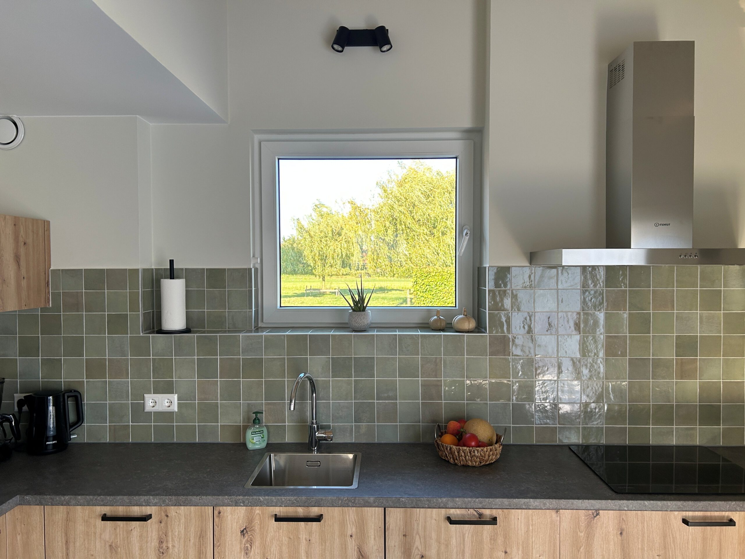 Binnen geniet je van een lichte woonkamer met grote ramen, een compleet uitgeruste keuken en een smart-tv. Buiten beschik je over een eigen terras met vrij uitzicht, perfect voor een ontbijt in de ochtendzon of een ontspannen middag met een goed boek.
