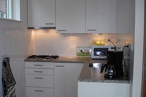 De open keuken is voorzien van een magnetron, vaatwasser, koffiezetapparaat, waterkoker en koelkast met vriesvakje.