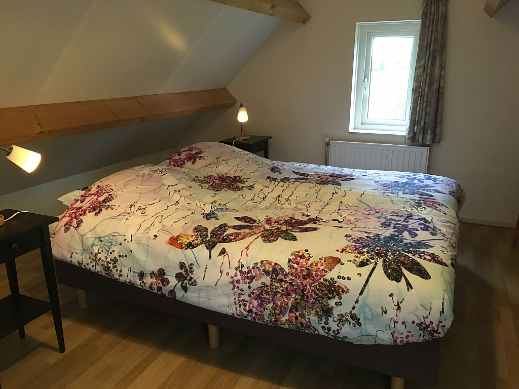 Op de bovenverdieping is een grote slaapkamer met 4 éénpersoons bedden. De luxe boxspringbedden zijn extra lang (2.10 m) en voorzien van dekbedden. Op de begane grond is een 2-persoons slaapkamer.
