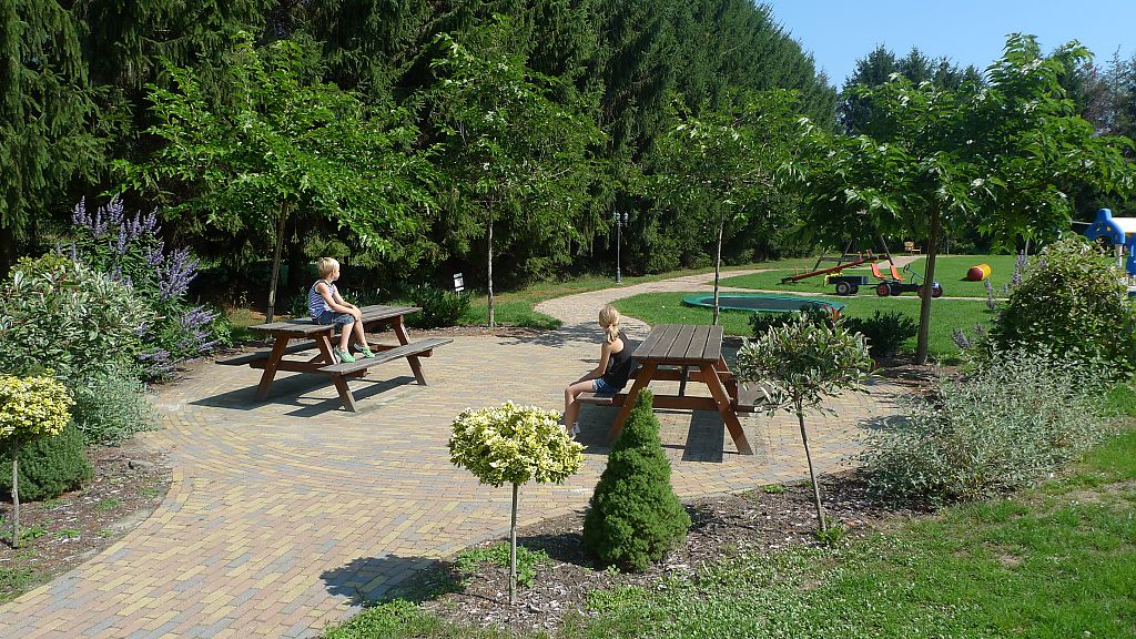 Beide accommodaties hebben een eigen sportveld en overdekt terras met tafels en stoelen.
