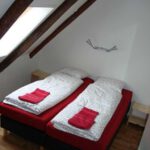 De groepsaccommodatie biedt plaats aan groepen van maximaal 24 personen. Beneden, waar vroeger de koeien op stal stonden, zijn 6 comfortabele kamers met eigen sanitair (toilet, douche en wastafel) gerealiseerd. Op de voormalige hooizolder zijn nog eens 5 ruime slaapkamers, waarvan 1 met 2 stapelbedden. Daarnaast zijn hier boven 2 praktische sanitairruimten met elk een dubbele wastafel, douche en toilet.